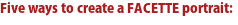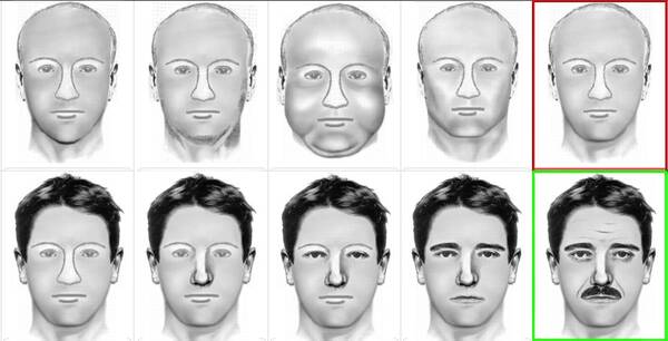 FACETTE produces synthetic portraits fully automatically: According to the description of the witness - after working through a check list - the program offers a random choice of facial combinations. A special filtering process leads you to an accurate portrait resemblance within minutes. Facial compositing has never been that easy.